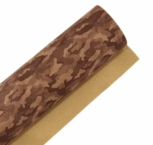 Shimmering Camo kommt in unterschiedlich Brauntönen mit hellbrauner Vliesrückseite. Diese Kombination macht das Kunstleder nicht nur optisch edel, sondern auch besonders angenehm zu verarbeiten. Mit einer Stärke von ca. 0,9 mm und einer Breite von etwa 135 cm bringt es ein angenehmes Gewicht von ca. 668 g/m² mit, wodurch es robust und dennoch gut verarbeitbar ist.