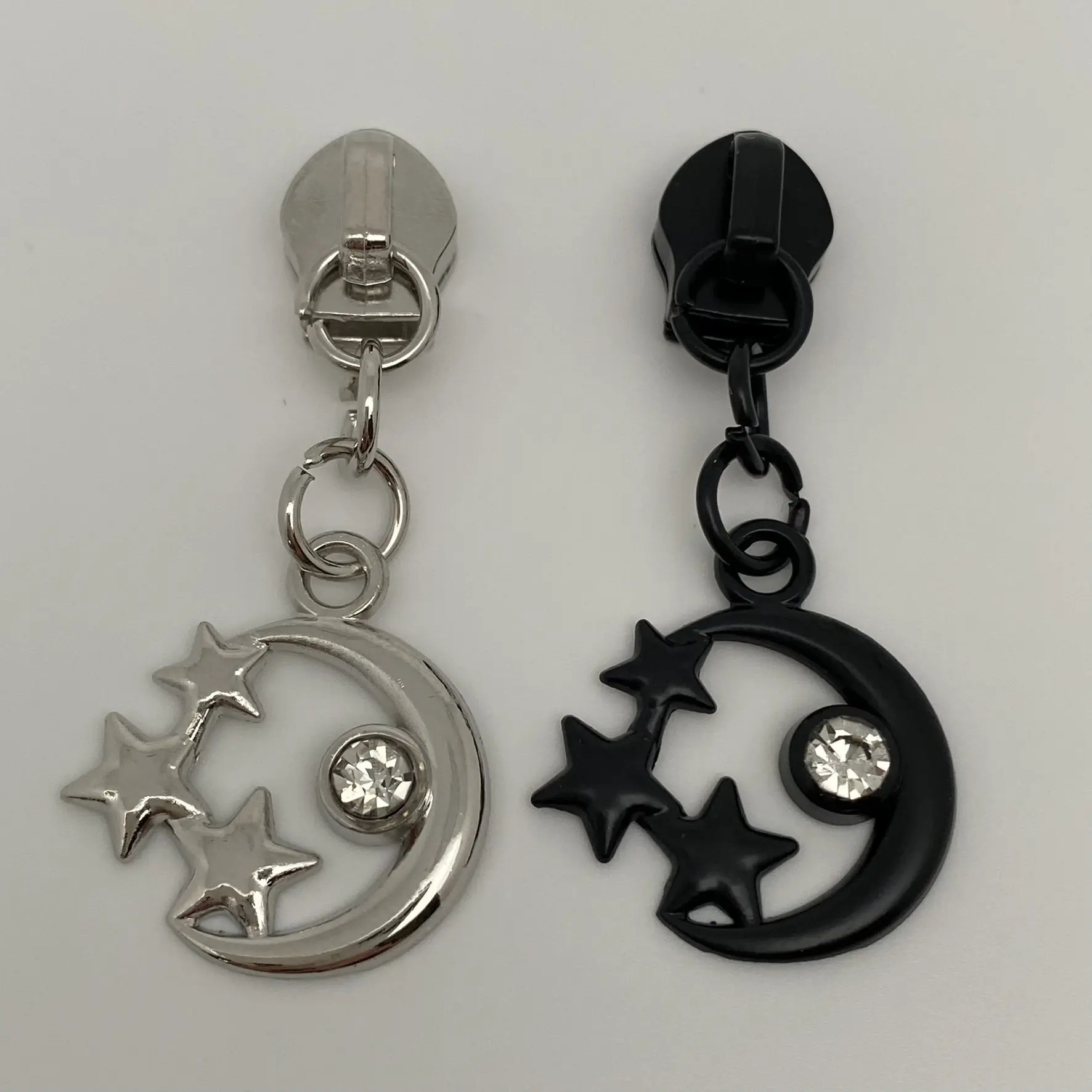 - Design: Das auffällige Motiv zeigt einen großen, detailreichen Mond, umgeben von drei Sternen. Der Zipper wird durch einen hochwertigen Strassstein veredelt, der zusätzlichen Glanz und Eleganz verleiht.